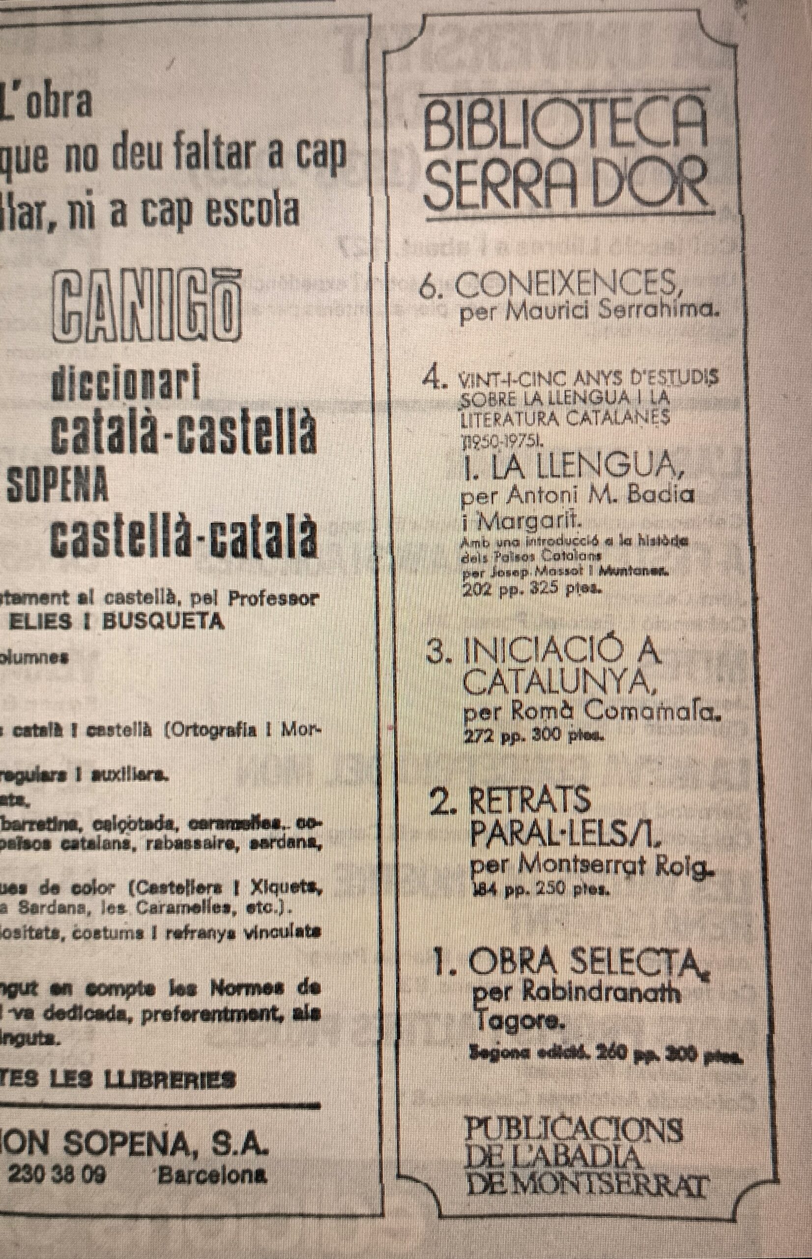 A Publicitària Catalana, empresa dirigida per Jordi Úbeda, creador de la distribuïdora L’Arc de Berà, la Llibreria Ona i impulsor de l’Editorial Pòrtic i, encara, gerent de les Publicacions de l’Abadia de Montserrat, cada mes dissenyàvem els anuncis que es publicaven a la revista Serra d’Or. Era una feina grata, per a mi, quan em tocava, fer anuncis de llibres en les seves pàgines que llegia amb tant d’interès. L’atzar em va propiciar una aventura inesperada. Amb la sortida del diari Avui hi va haver molt moviment, en aquell estudi de publicitat: a més dels habituals anuncis de les editorials que publicaven llibres en català, vam rebre encàrrecs de diversos anunciants que hi volien ser, en aquell primer número del primer diari publicat en llengua catalana al Principat.