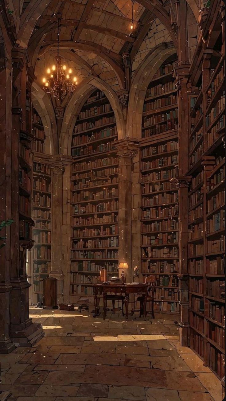 La va obrir lentament i va seguir el passadís estret. Al final, hi havia una altra porta, i en obrir-la va veure una biblioteca immensa. L’espai tenia sostres alts, una part central oberta en cercle i molts passadissos inacabables.