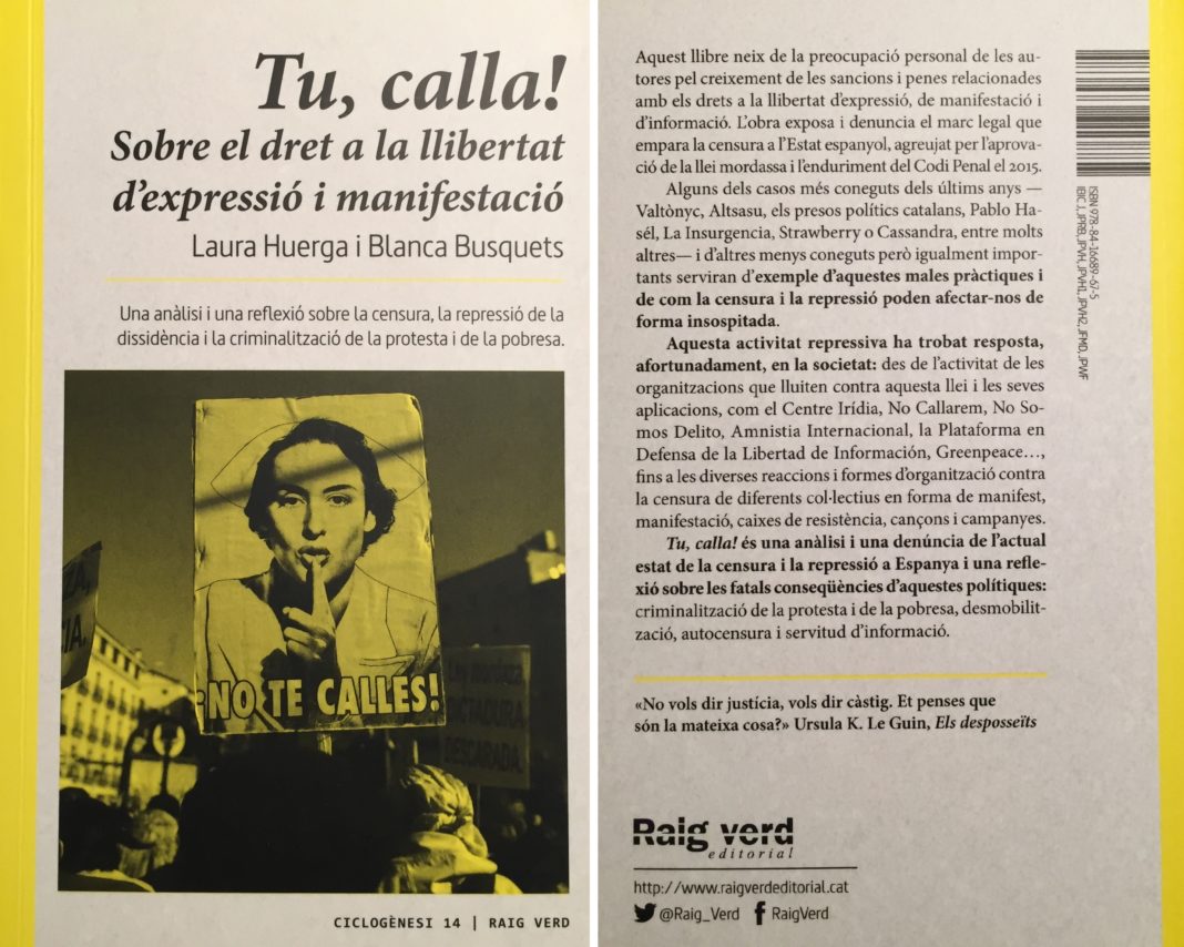 Amb el propòsit de denunciar les conseqüències de les aprovacions de les dues lleis anteriorment esmentades, les autores Laura Huerga i Blanca Busquets han escrit aquest implacable assaig en defensa del dret a la llibertat d’expressió i de manifestació, dos drets que estan en clar perill actualment. I per exemplificar aquesta retallada de drets, les autores exposen múltiples casos on les llibertats han estat restringides, sovint amb la connivència de la policia, jutges i fiscals, i esperonades per uns mitjans de comunicació que, deixant el periodisme de banda, han fet d’altaveu i s’han erigit defensors i promotors d’aitals actuacions repressives.